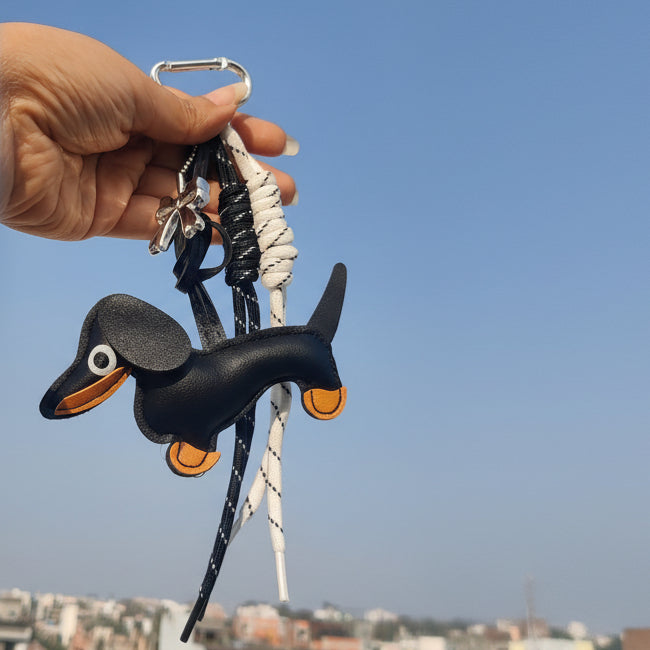 - Meet your new favorite bag buddy—the Dachshund Dog Bag Charm! Sporting an adorable bow (talk about cuteness overload!) and a heart-shaped key ring, this little fella is ready to add a sprinkle of charm to your bag.